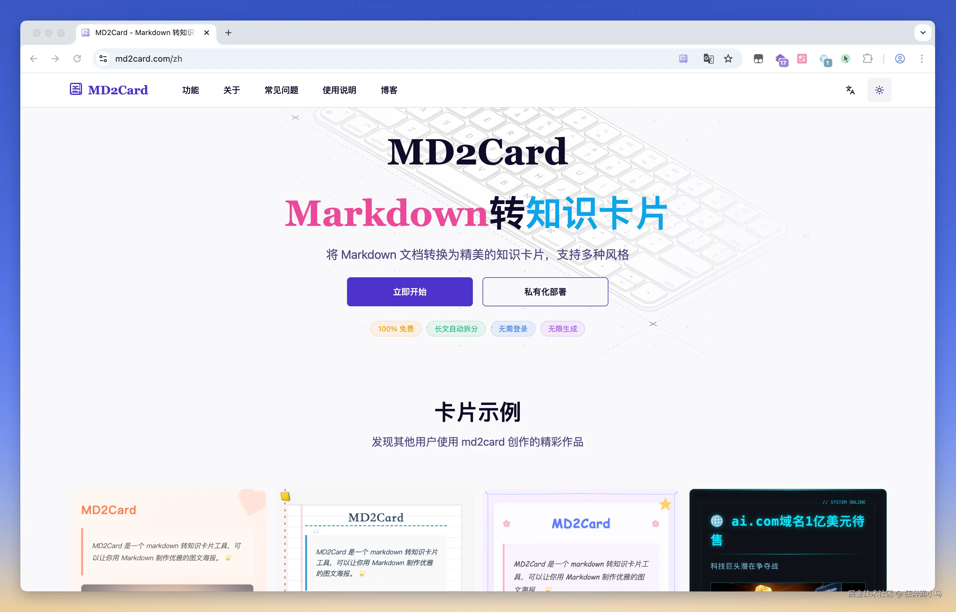 md2card 只需要不与大厂冲突,另辟蹊径,总可以在偌大的市场中分一杯羹。