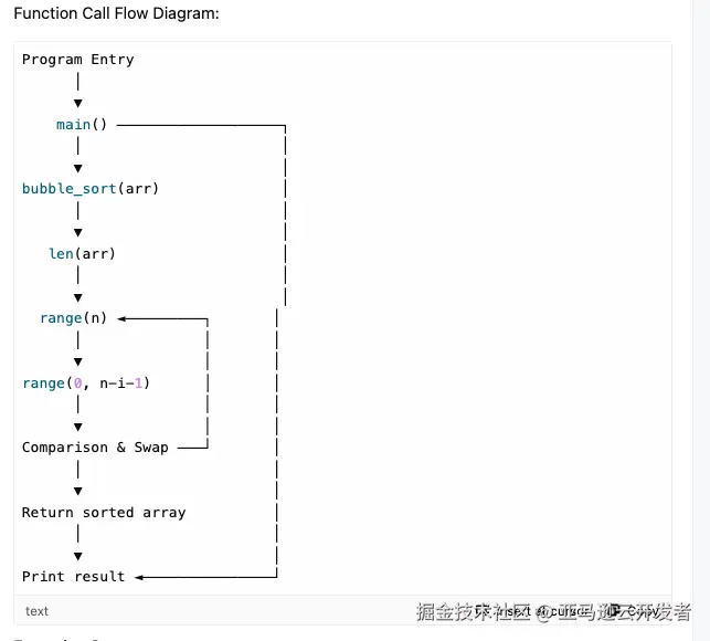 可以试试“please show me the function call flow”,Amazon Q 将以一个文字版本的调用关系图,来应答,如下图所示。