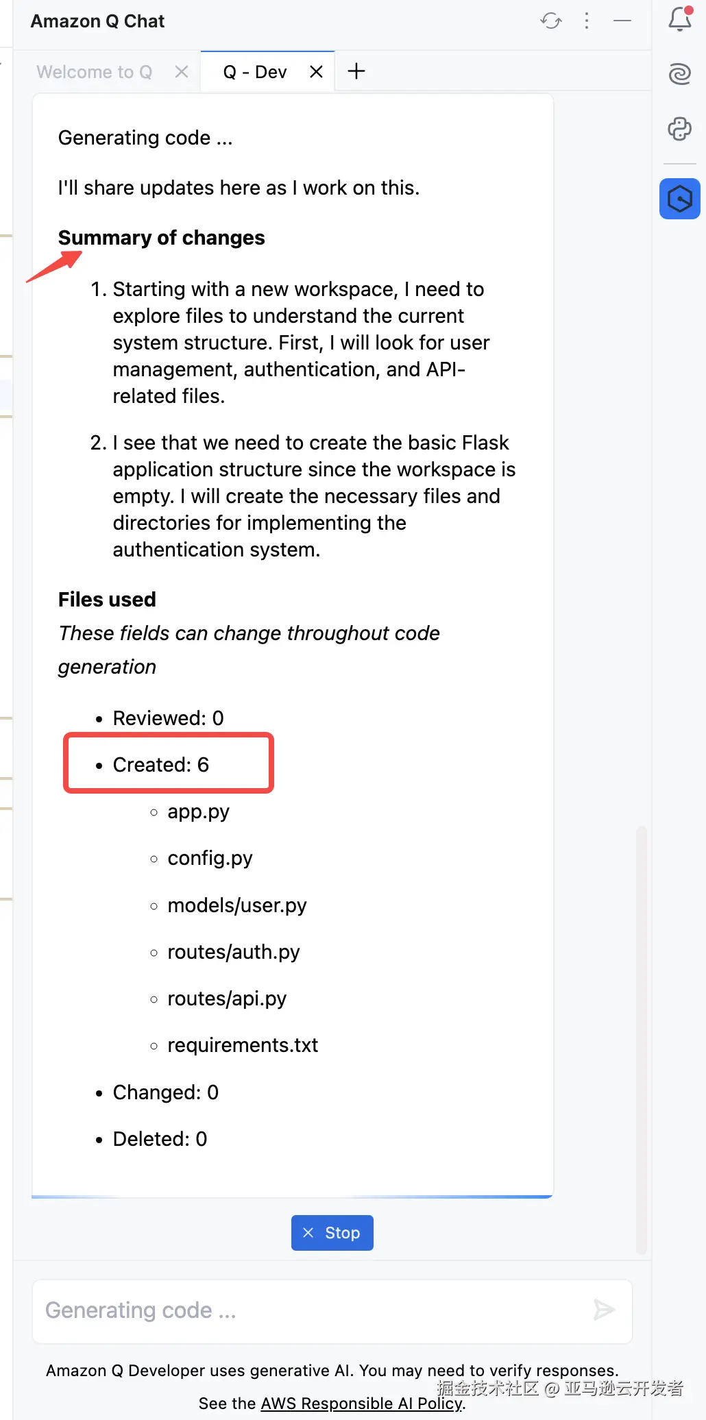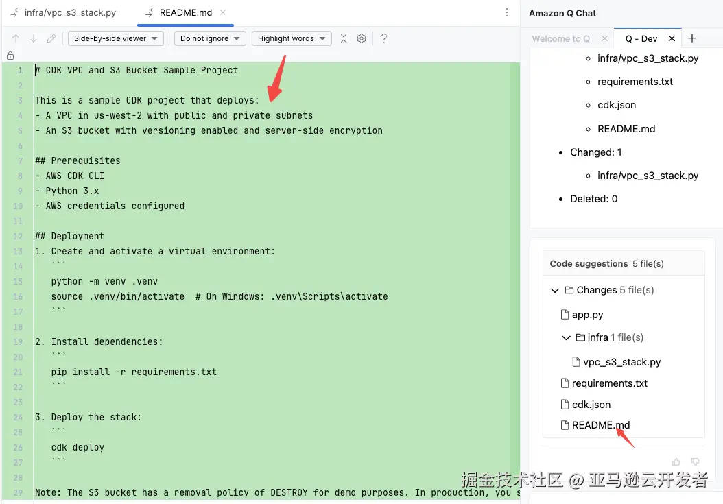 另外,我们还可以注意到,Amazon Q 为项目创建了 README.md。