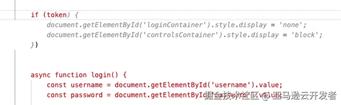 例如在一段 js 前端应用程序里,当之前的代码里有隐藏/显示某个控件组的代码逻辑存在,当后续编写代码的时候,Amazon Q 将智能地去推测开发者的意图,并提供推测出来的代码建议,如下图所示。