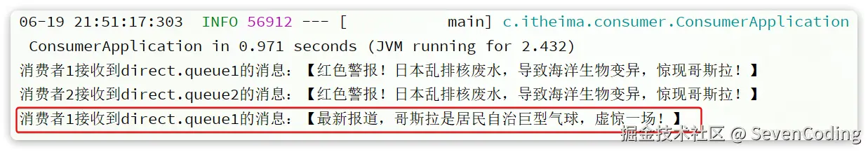 hello.queue1或hello.queue2队列,自然就能接收到消息了。