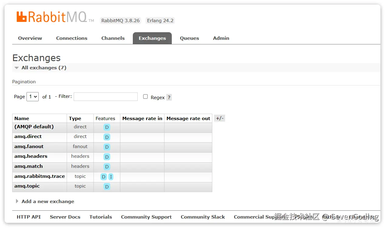 打开Exchanges选项卡,可以看到已经存在很多交换机: