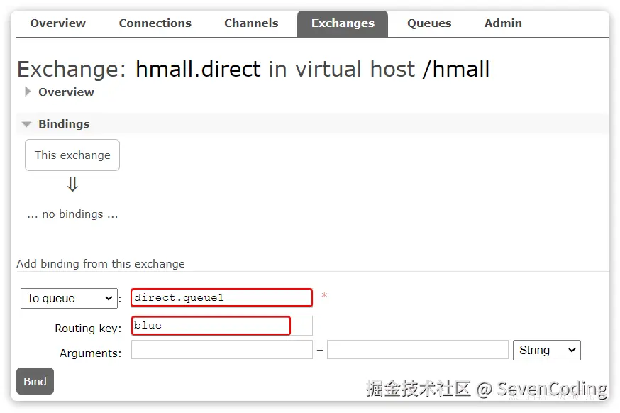 public Binding bindingQueue1WithBlue(Queue directQueue1, DirectExchange directExchange){