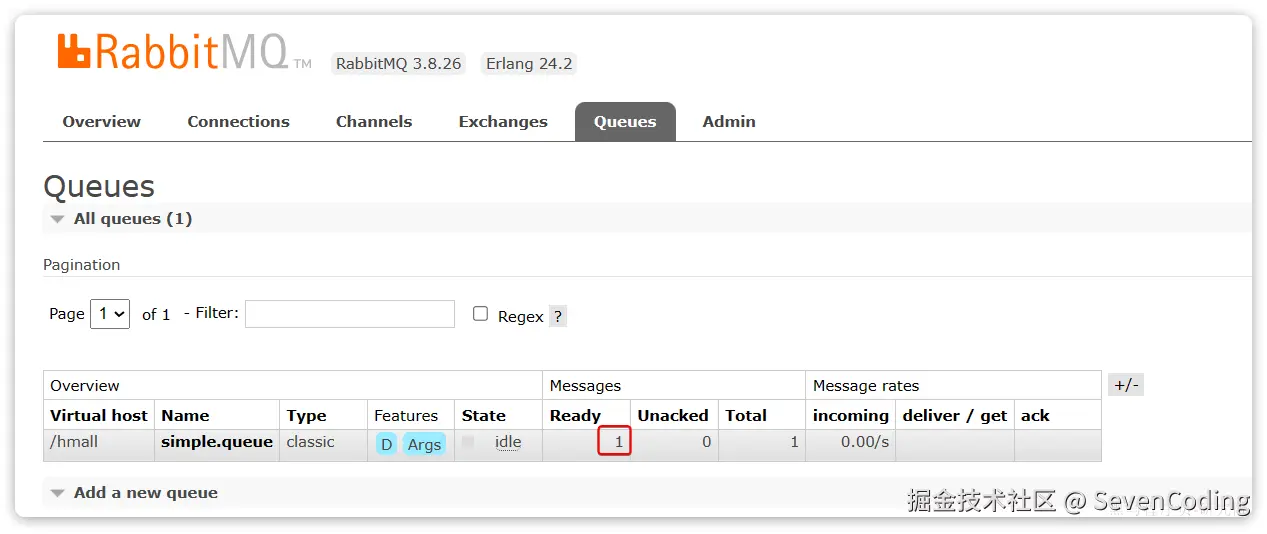 可以看到消息到达队列了: