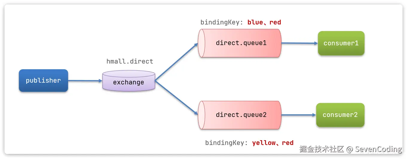 return BindingBuilder.bind(directQueue1).to(directExchange).with("blue");