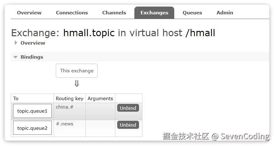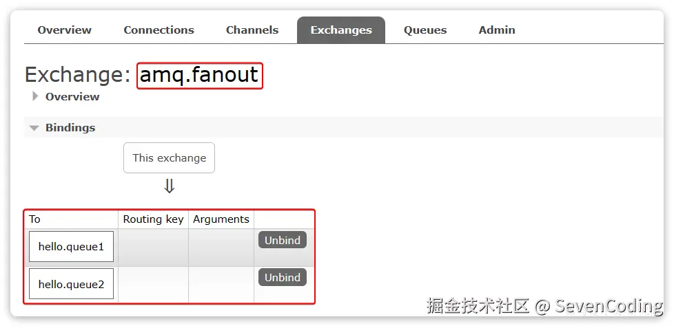 相同的方式,将hello.queue2也绑定到改交换机。