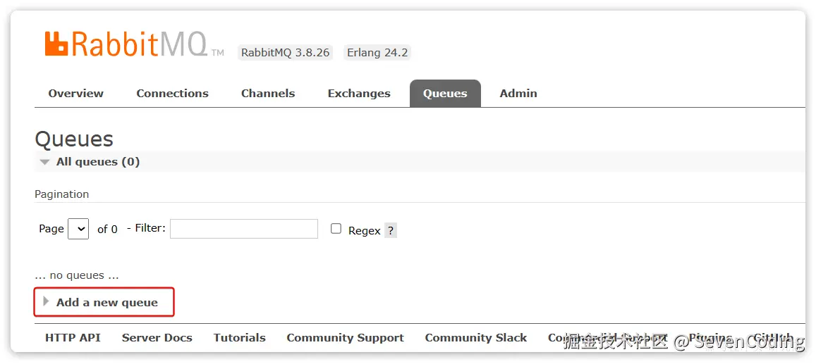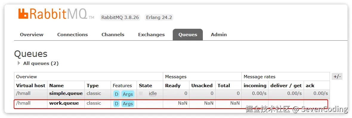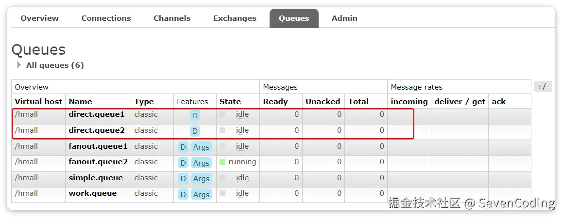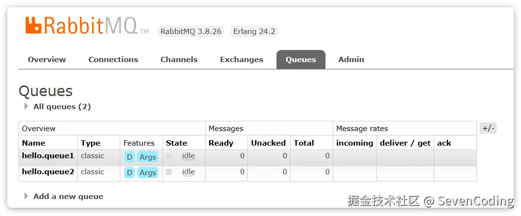 然后再次查看queues选项卡,会发现之前的队列已经看不到了: