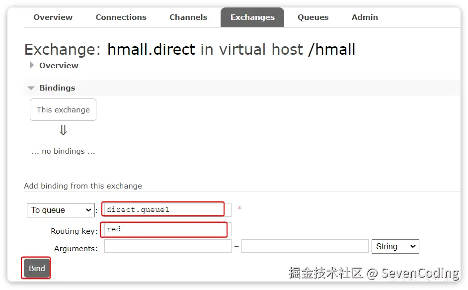 public Binding bindingQueue1WithRed(Queue directQueue1, DirectExchange directExchange){