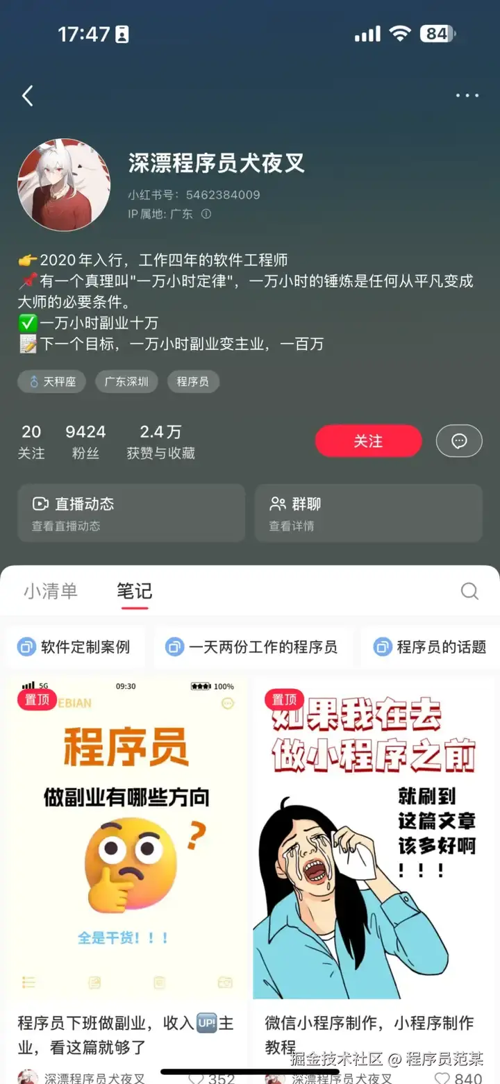 最后,也欢迎大家关注深漂程序员犬夜叉的小红书账号,一起交流、学习。