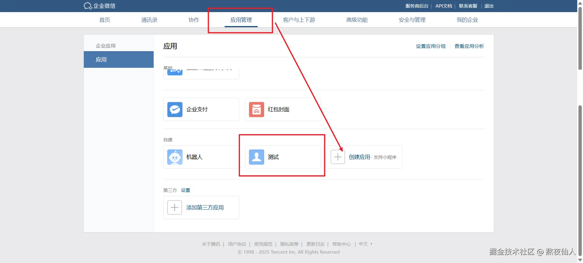 - 应用管理 -> 自建 -> 创建应用