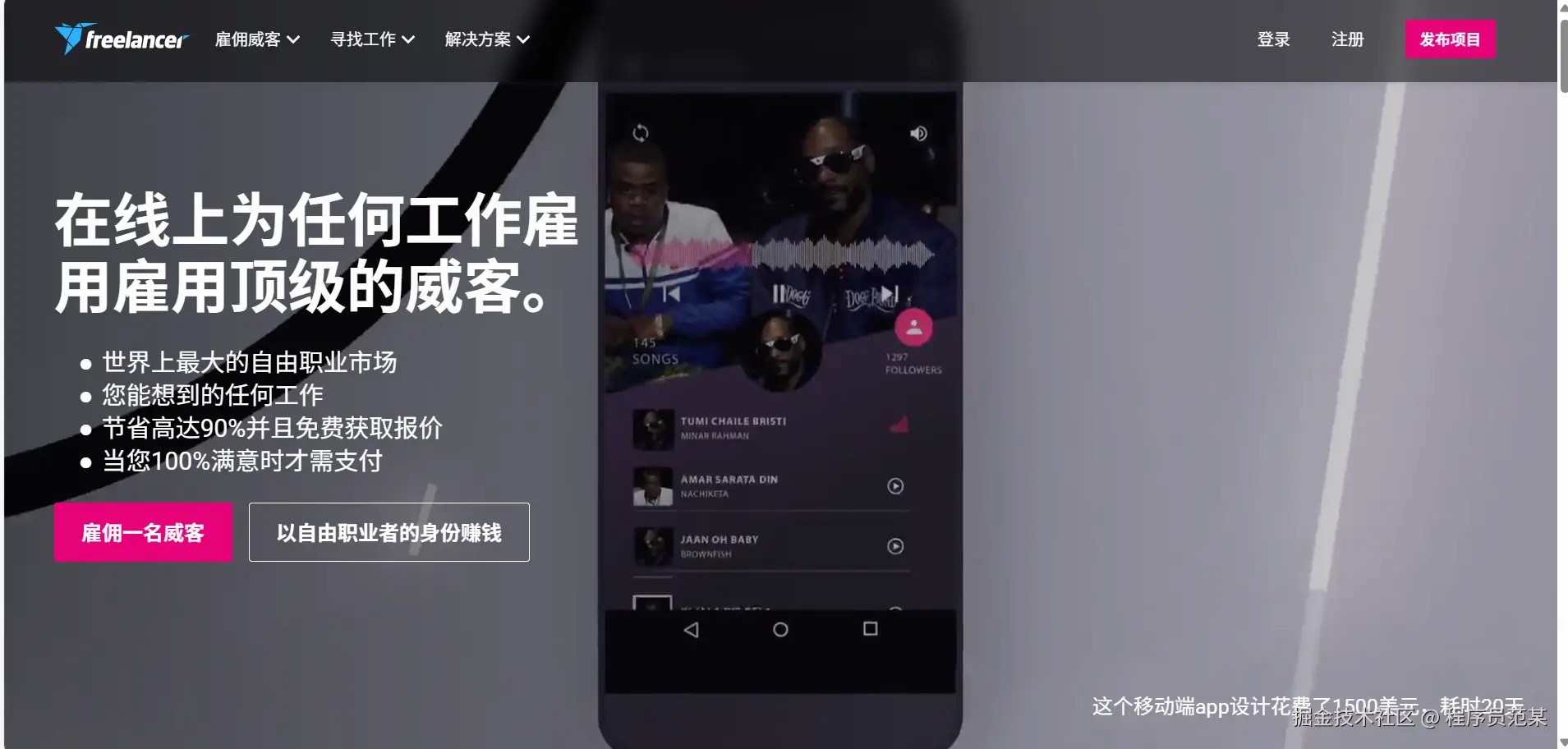 全球最大的自由职业平台,和Freelancer类似。同样是通用型接单平台,项目类型多样可满足多样化需求。