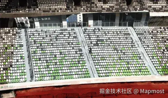 - 视频与倾斜三维模型融合:通过将单路或者多路枪机监控视频与奥体场馆室内外三维场景融合,实时大型活动现场的人流分布监测、异常人员与事件监控,保障活动顺利与安全开展。