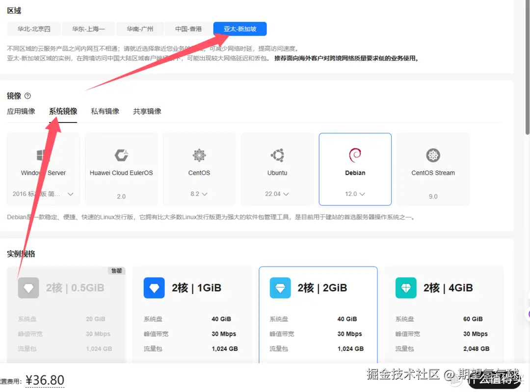 - 选择2核1G配置