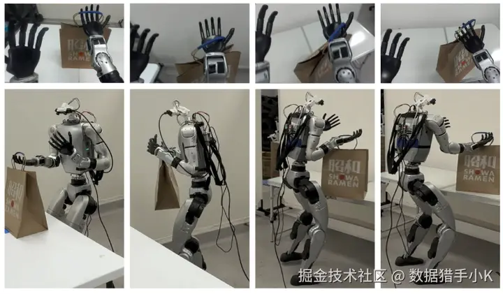 3、支持全身控制:数据集中的动作涵盖了手臂、躯干和腿部的协调运动,支持超灵巧全身控制。