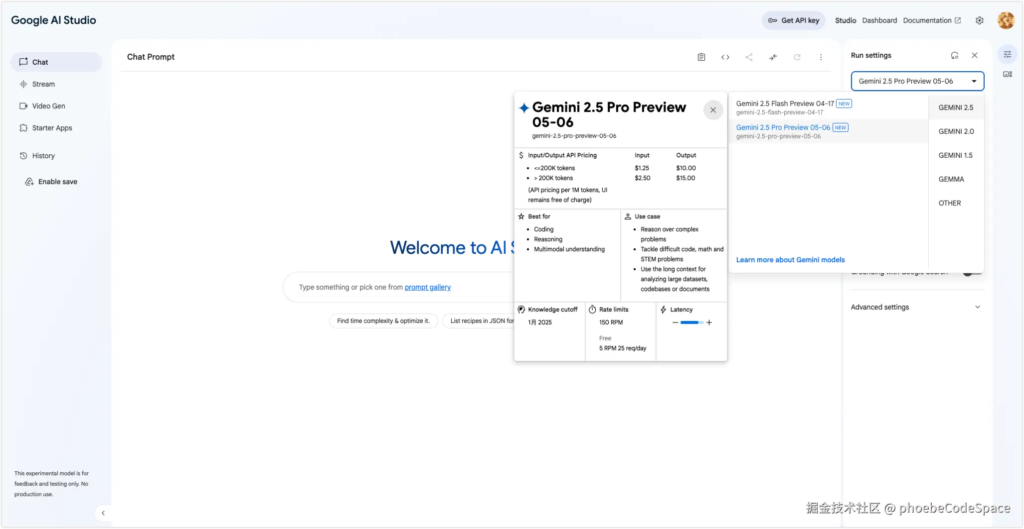 将模型切换为“gemini-2.5-pro-preview-05–06”,就可以体验了 (免费) 。