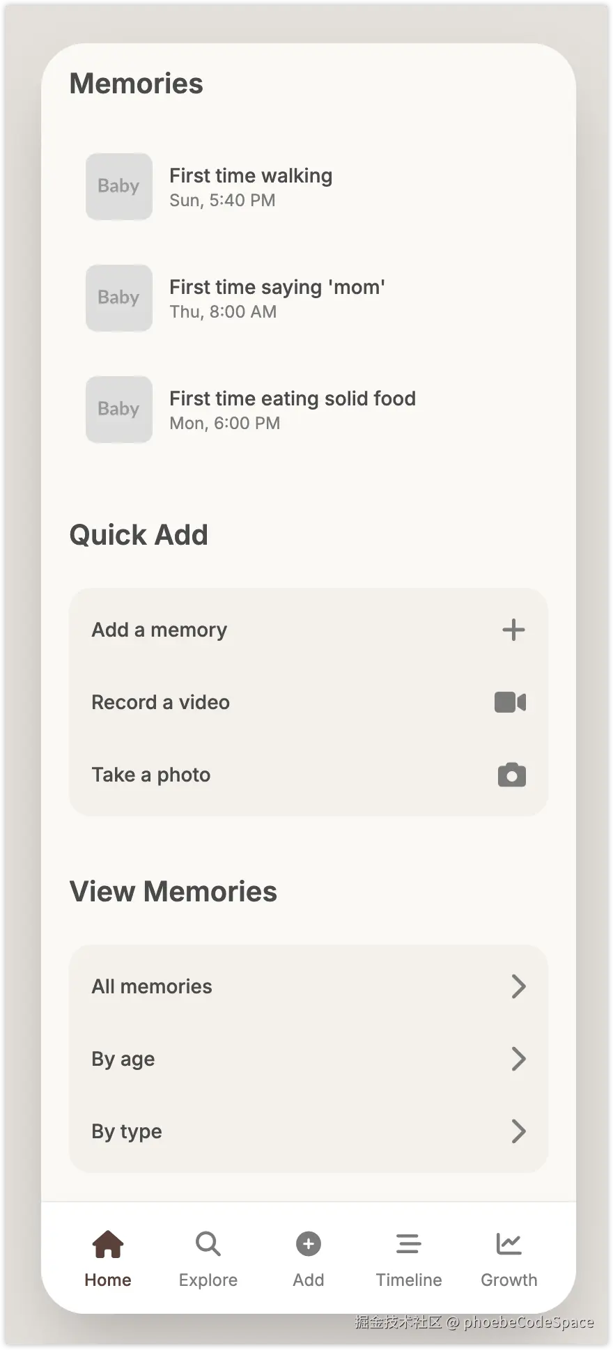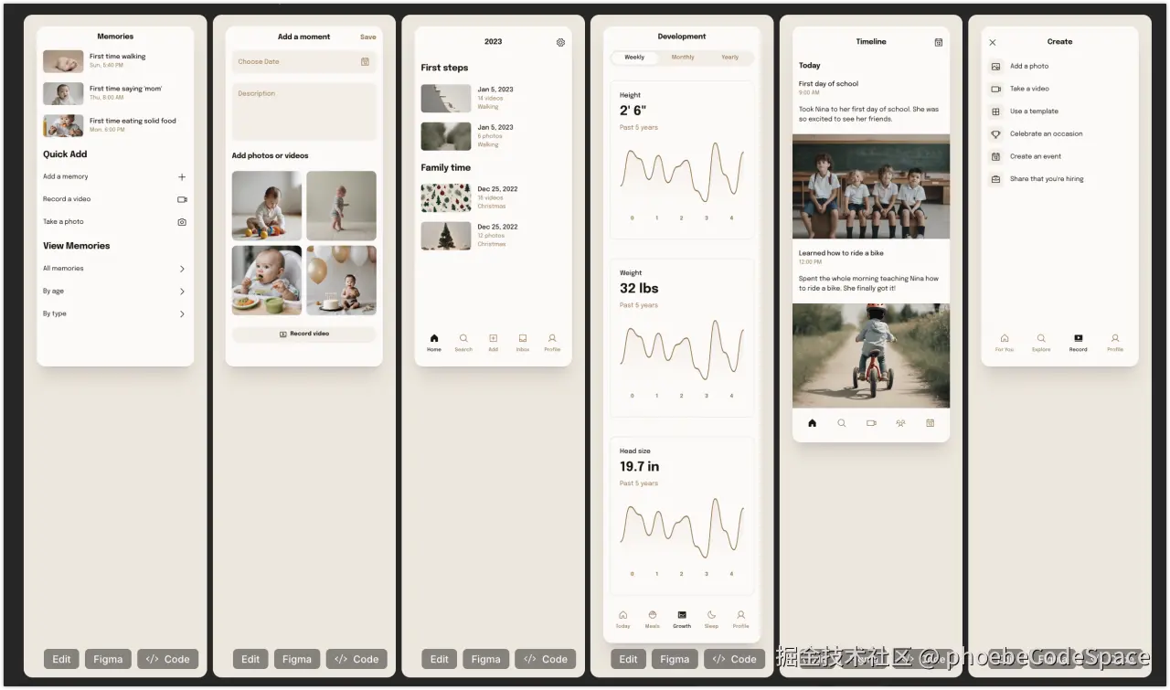 前段时间设想过一个记录宝宝成长记录的app,让galileo给我生成了一组高保真,现在就让Gemini 2.5Pro实操一下。