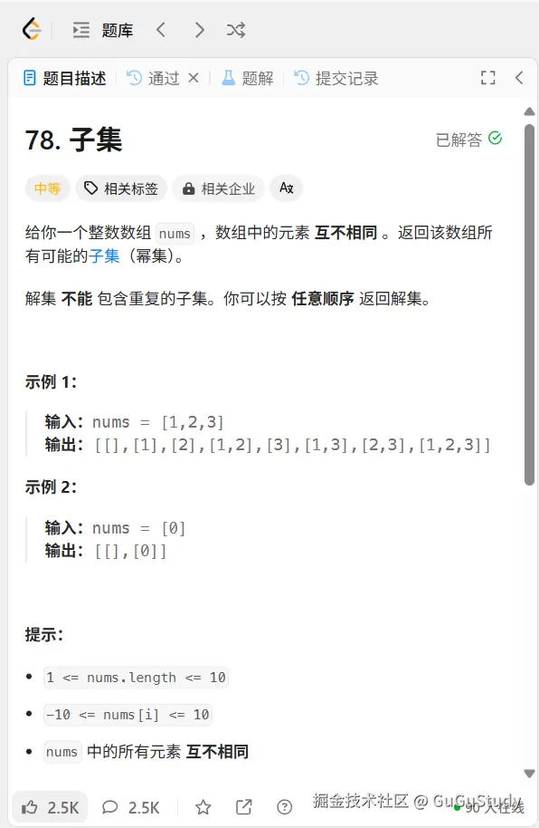子集(数组元素不同)