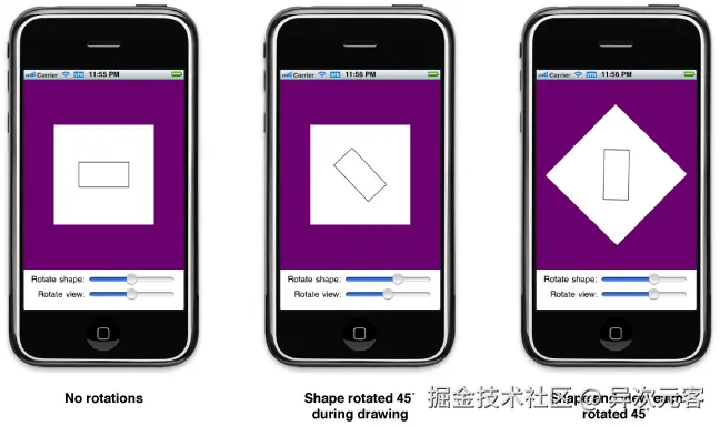- 绘制内容,绘制涉及使用图形技术如 Core Graphics、OpenGL ES 或 UIKit,在视图的矩形区域内绘制形状、图像和文本。