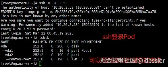 下图是qcow2镜像使用手工配置IP和Pod分配的地址无法不一致,是不能使用的错误示范。这个也是为什么上面提到的虚拟机需要是DHCP的原因。