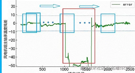 通过对比正常温度与预测温度的残差对风机大部件的运行状态进行实时监测,从而实现对风机关键部件的提前预警。