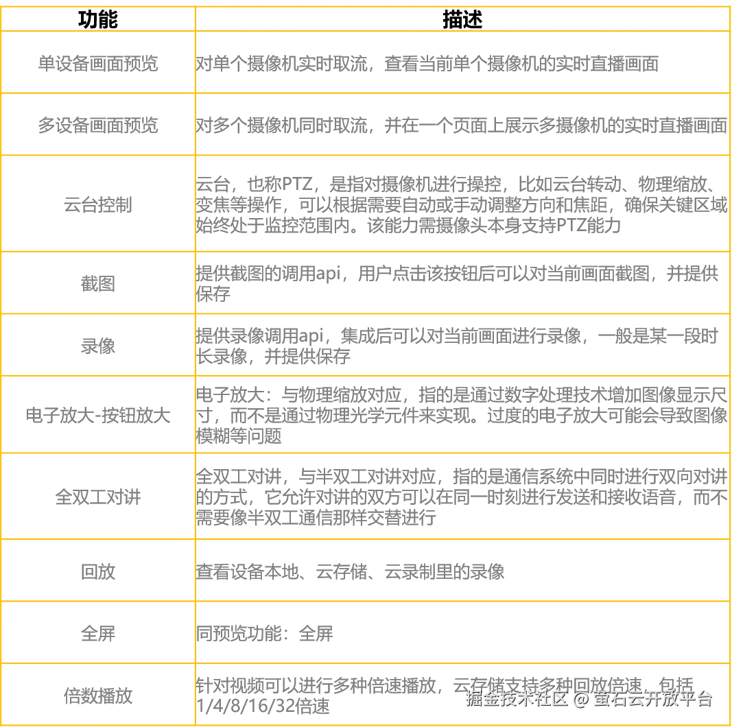 预览回放具体功能见下表: