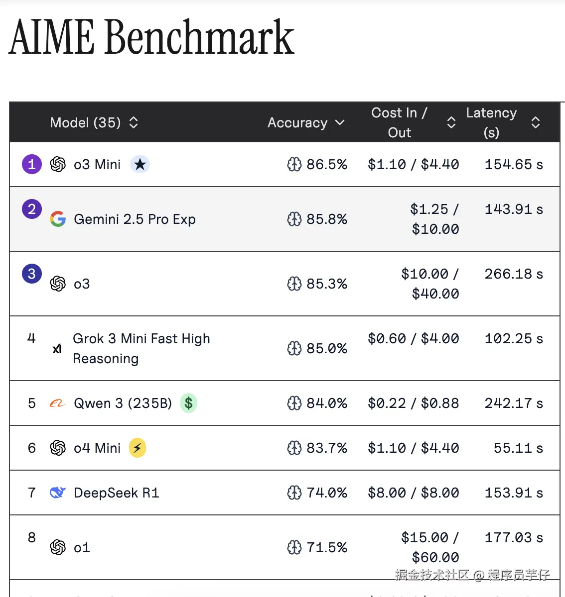 AIME (做数学题):暂居第五(84),但是开销最小,强于 deepseek-r1 (74)。略逊色于 o3, gemini 和 grok。