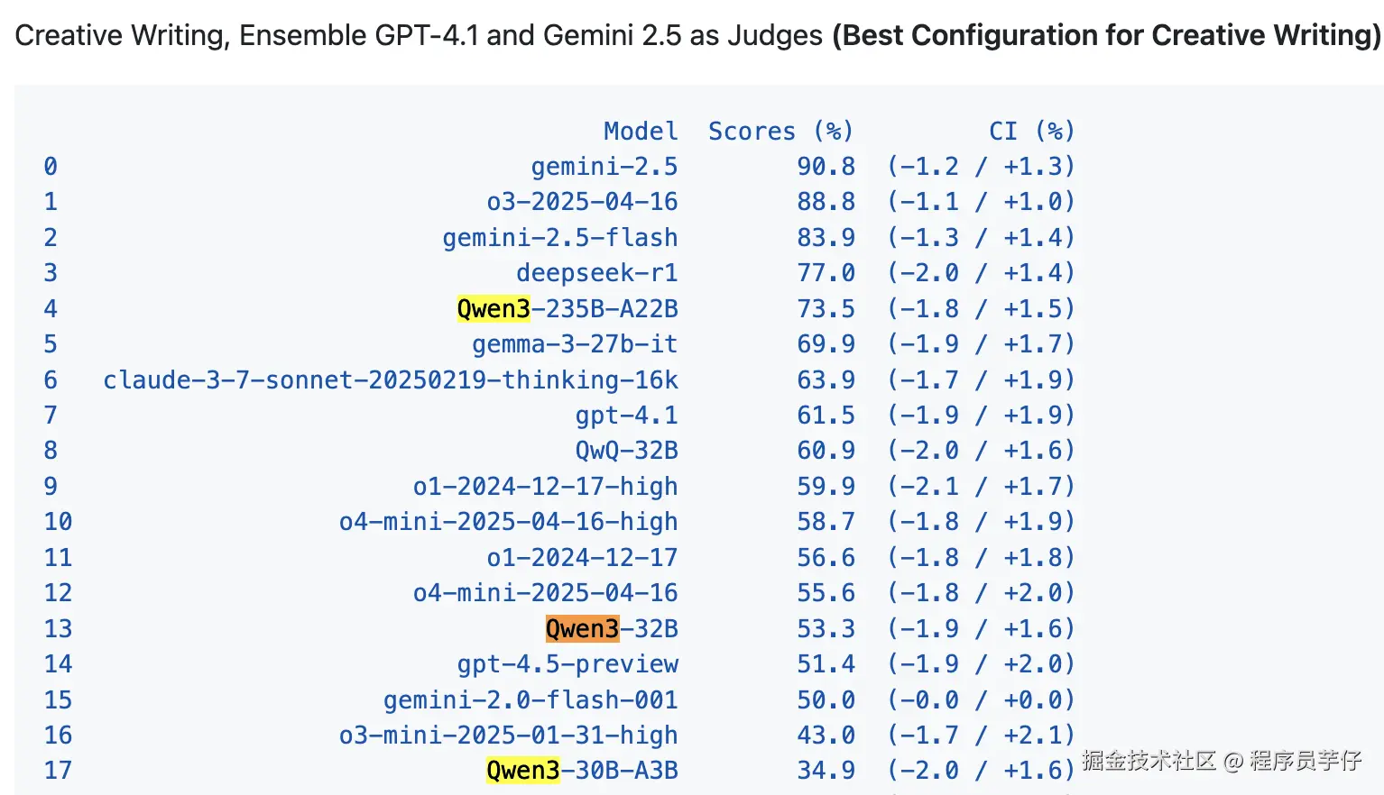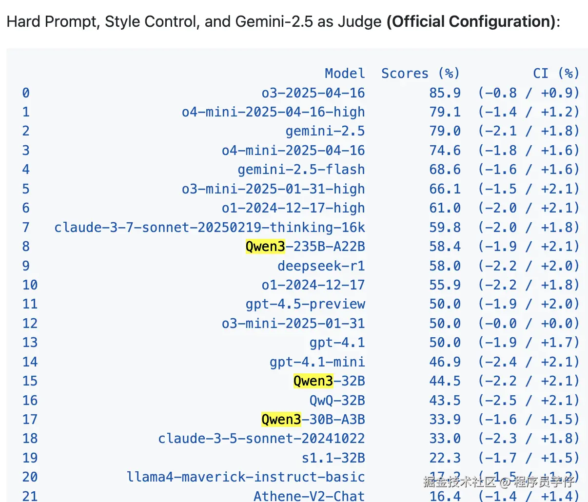 以下是官方的排名(还未更新 Qwen3):