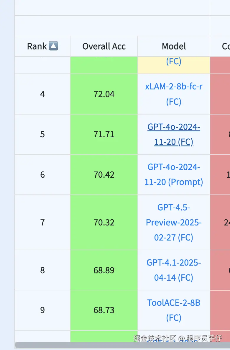 BFCL v3 (函数调用):排名第6,32B 模型排名第7。