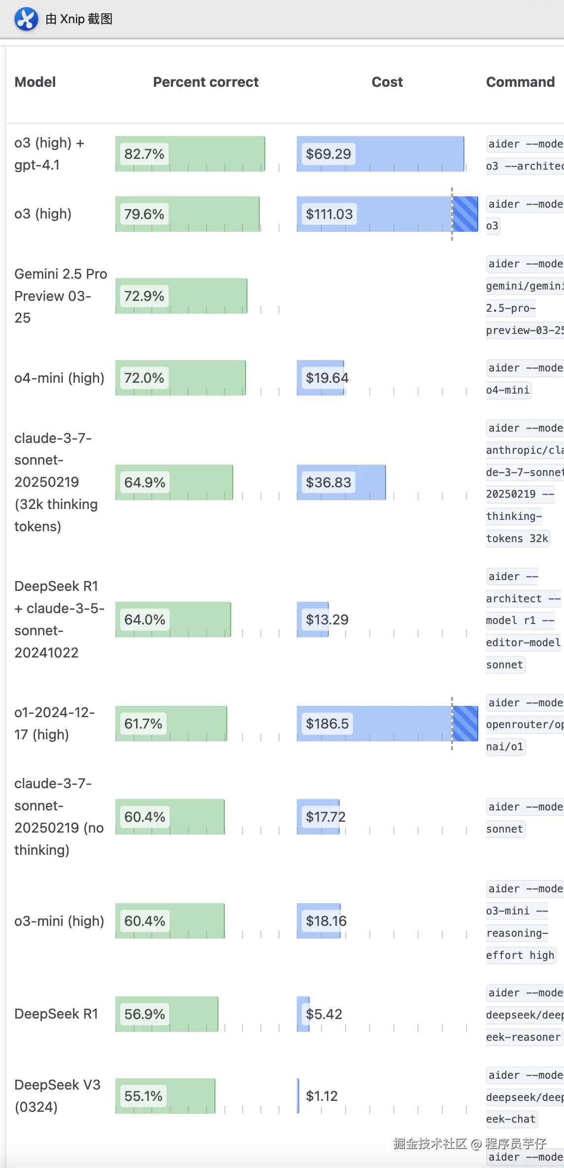 这里面比较有趣的就是 deepseek 了,r1 和 deepseek-0324 花费可谓是断崖式的下降,这样的评分 + 如此低的花费,也不难怪之前红极一时了。