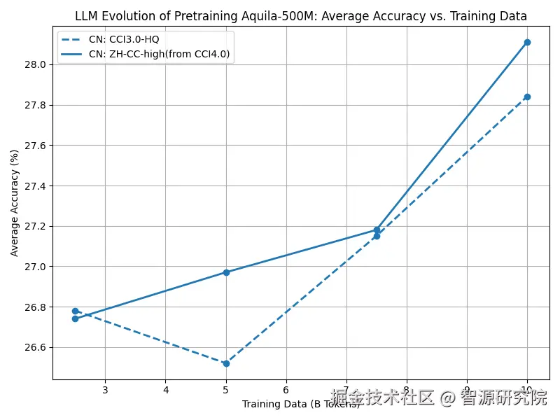 图2:CCI4.0-HQ中文数据集和CCI3.0-HQ数据集在训练500M模型效果上的对比