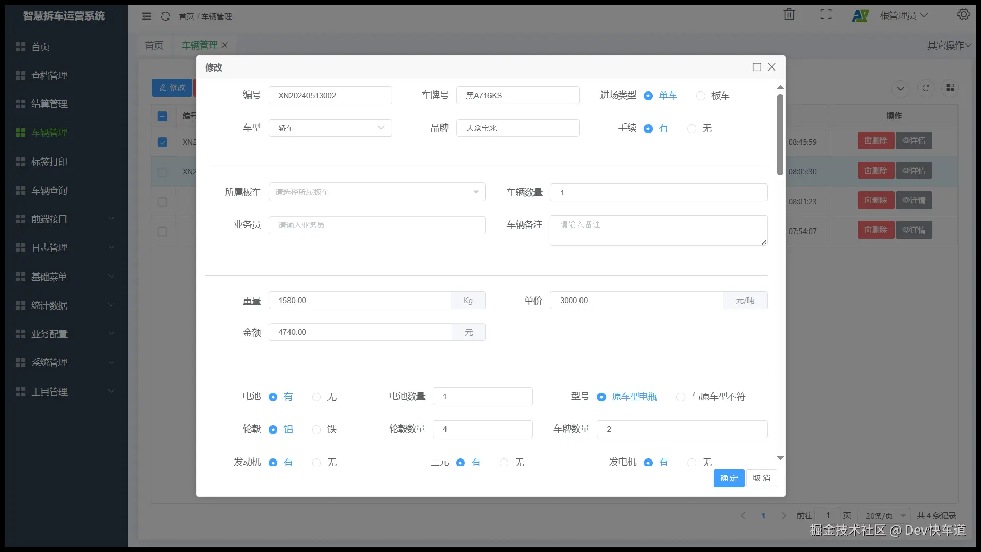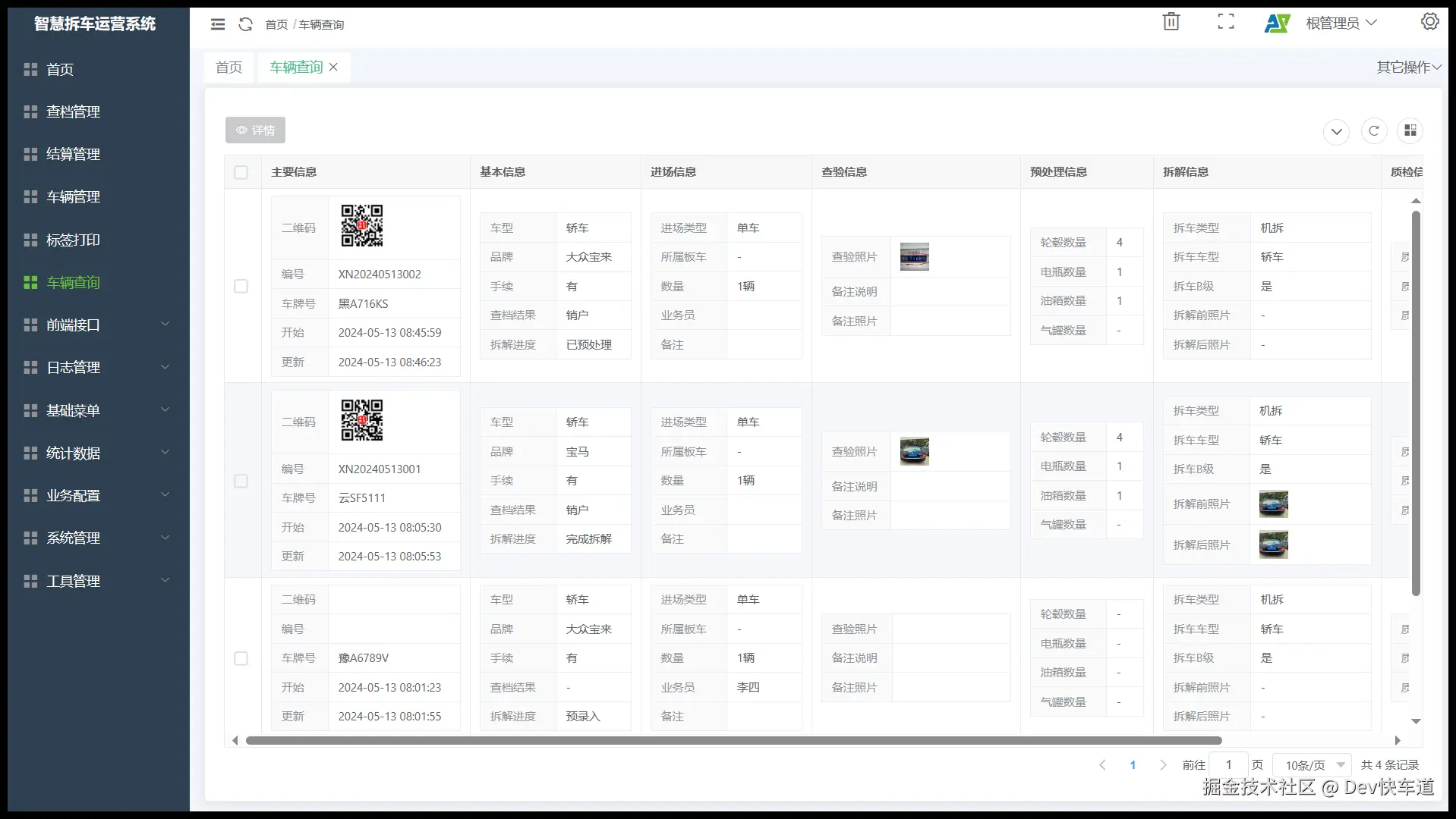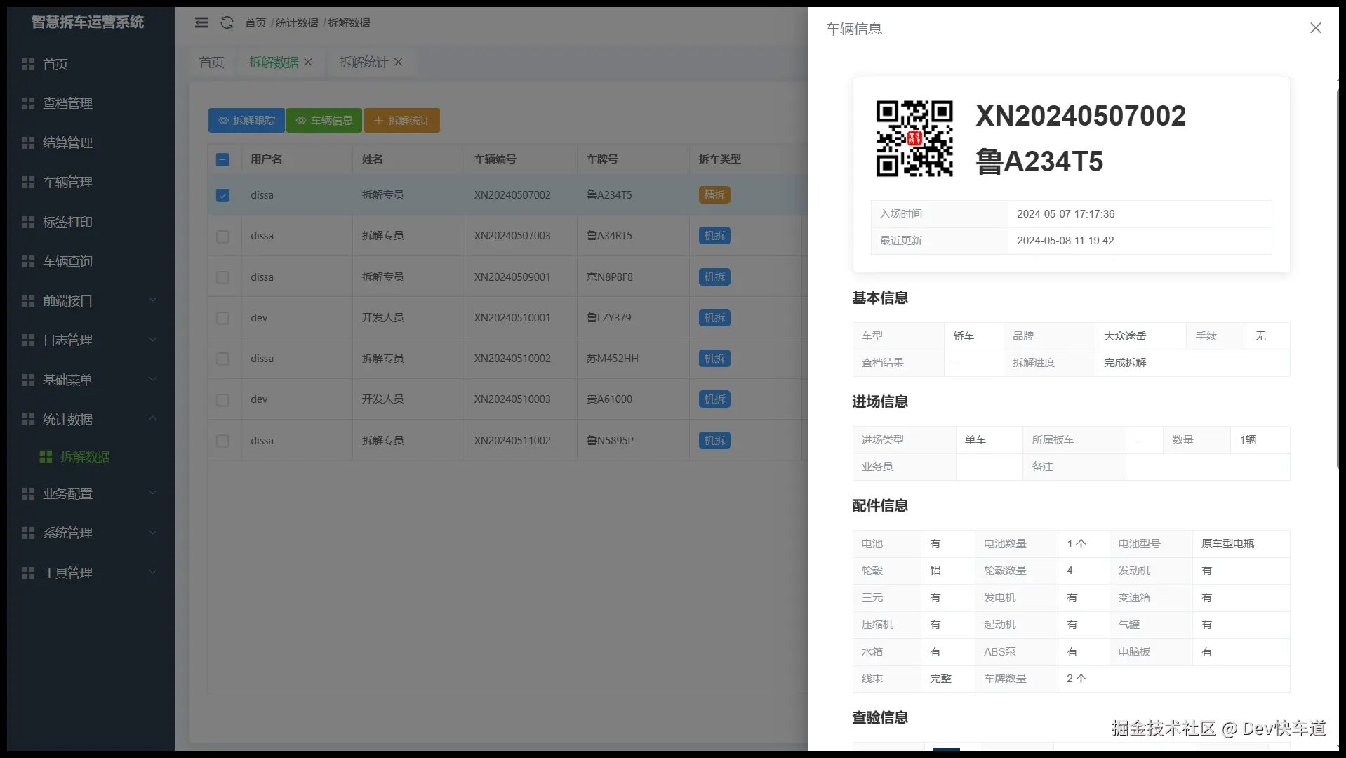 智慧拆车是结合车辆拆解工厂的实际运作流程开发的一款工厂业务管理系统;