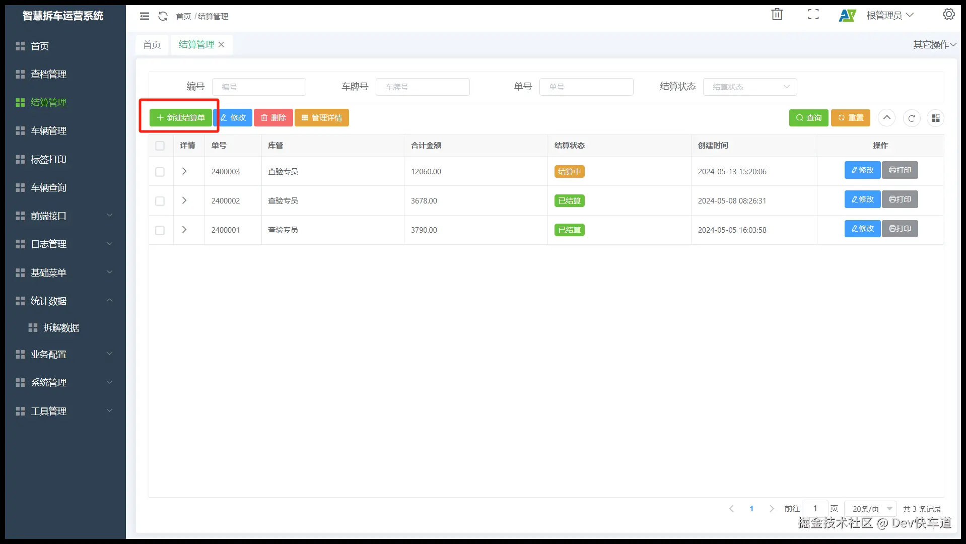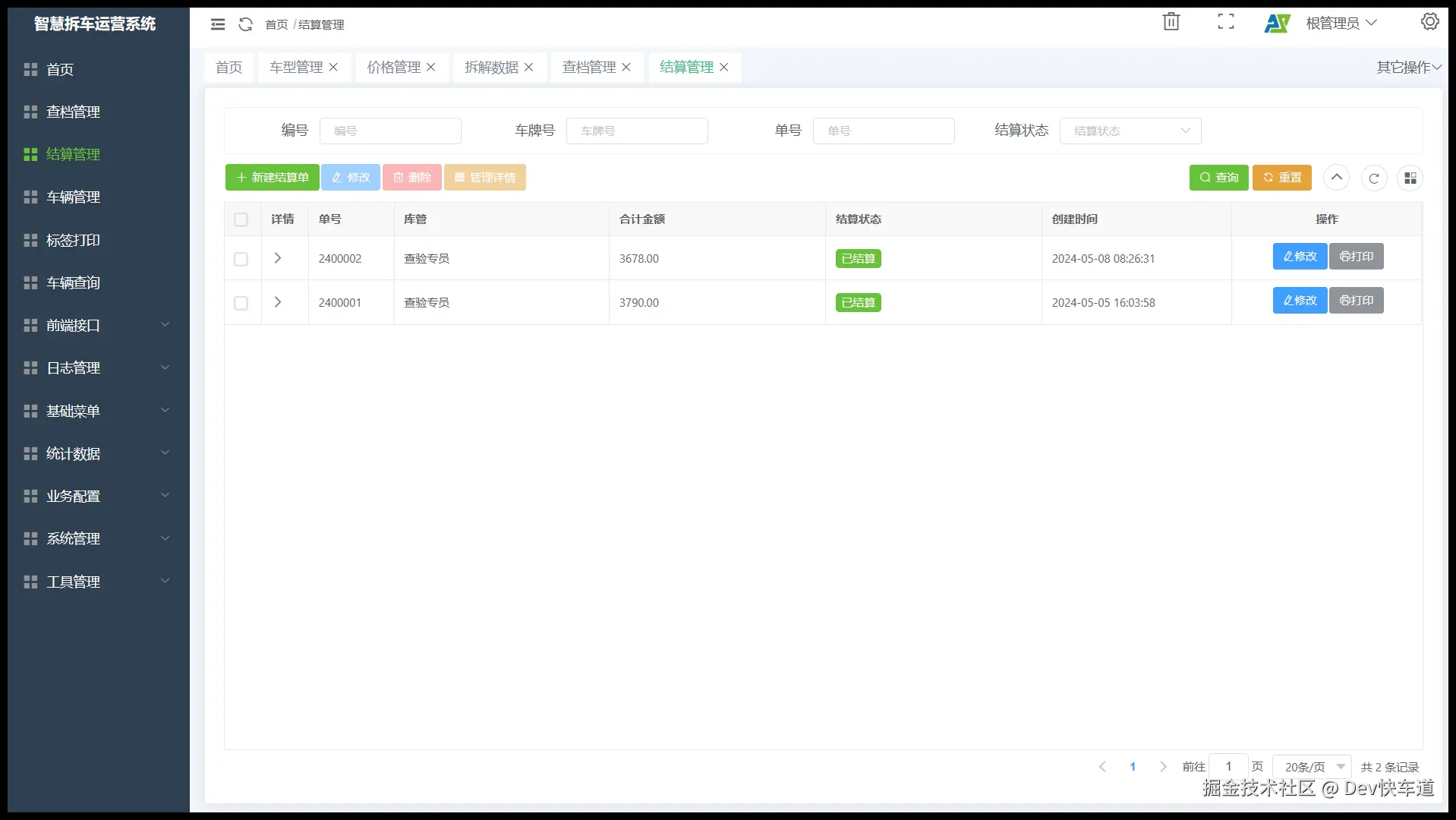 - 结算单人员:根据车辆查验信息,对车辆进行财务结算,打印结算单