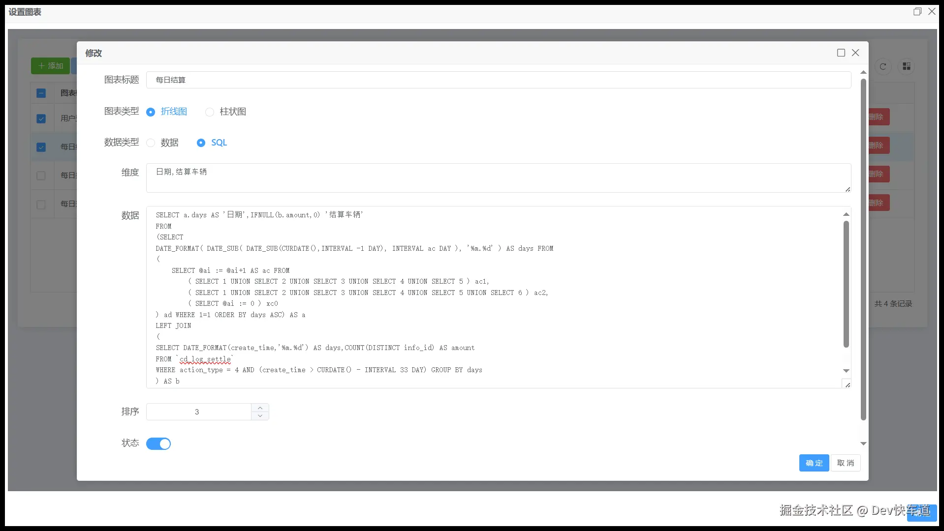 图表设置类似于统计设置,只是配置项稍有不同;这里就不再详细说明了;