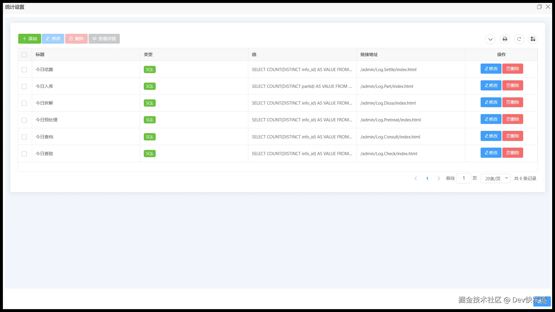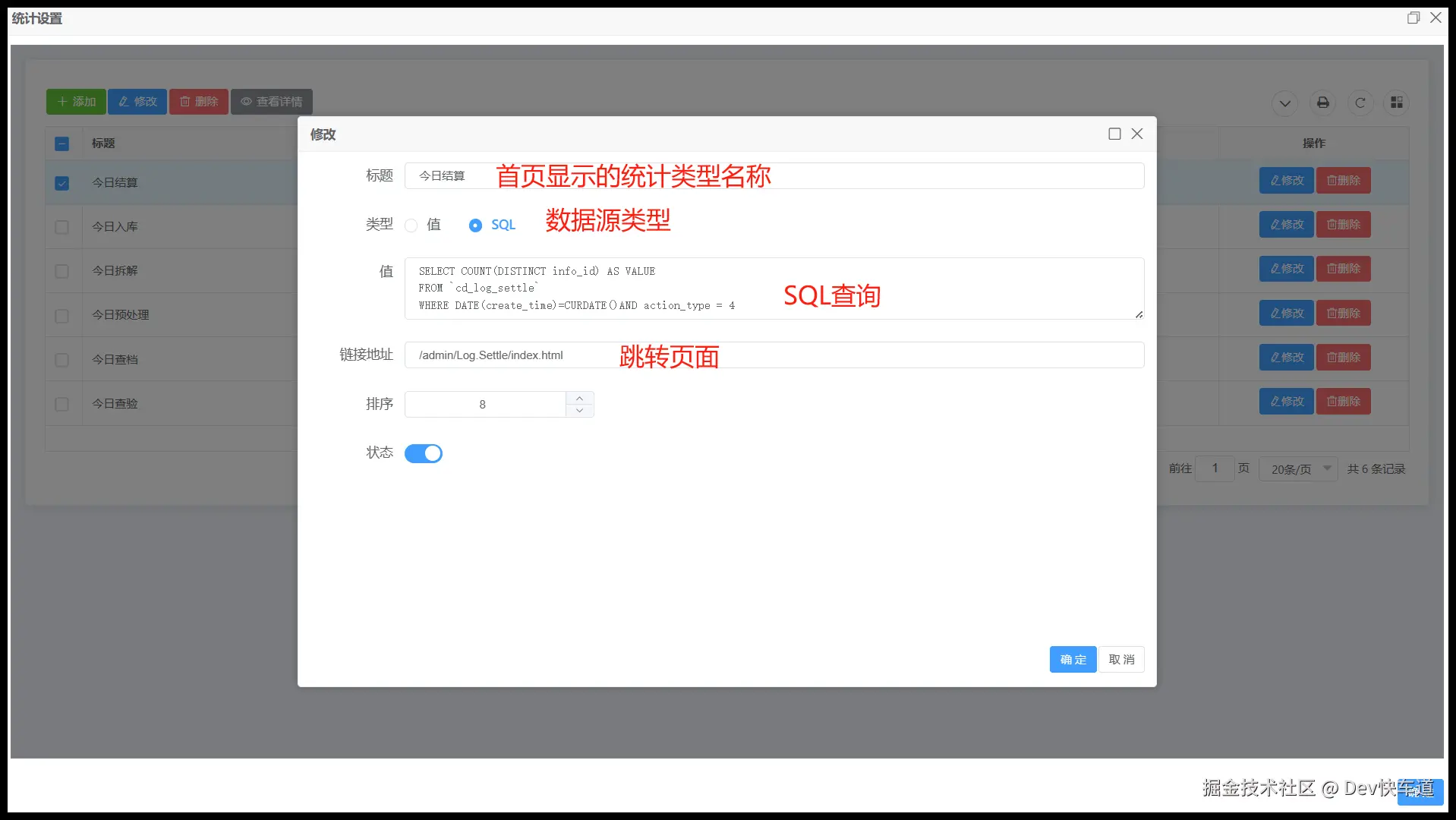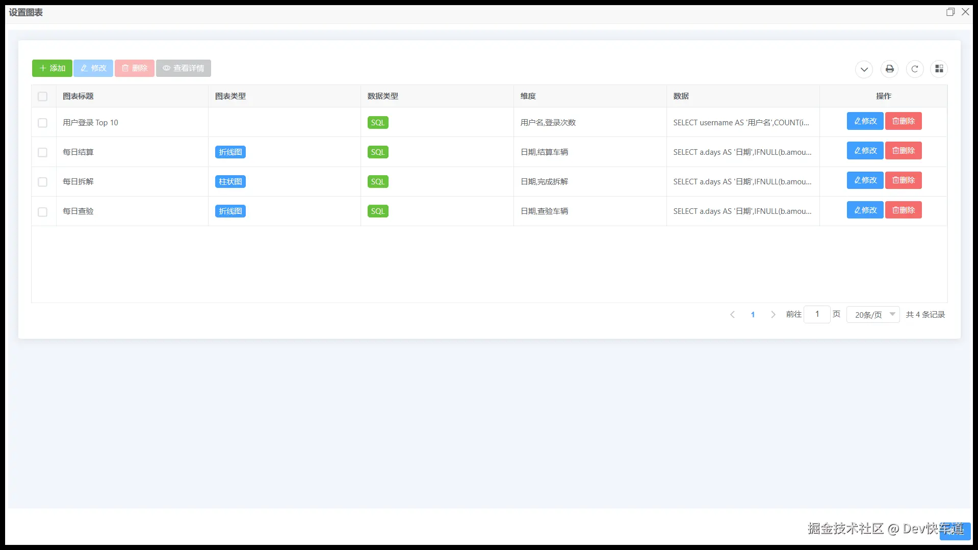 统计设置支持直接配置统计数据和通过SQL查询实现动态数据展示;