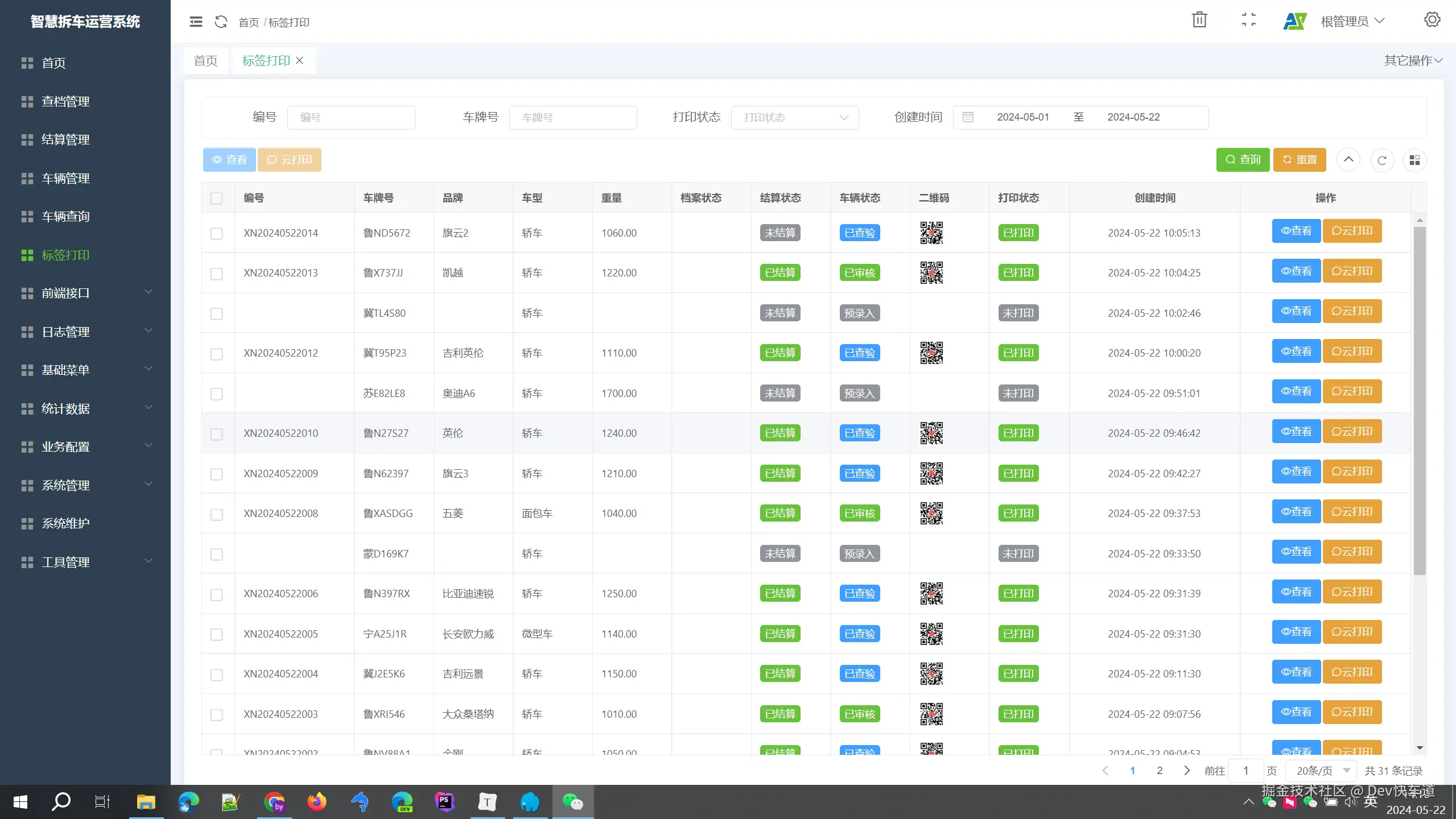 - 标签打印人员:对查验后生成的车辆信息,打印车辆标签;