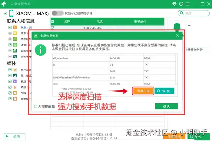 操作步骤3: 如果你发现扫描出来的数据好像不够全面,那就点击【深度扫描】,再次强力搜索吧!