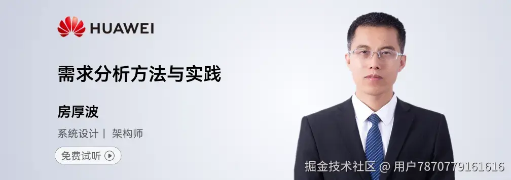 华为系统设计/架构师房厚波老师结合十多年的实践经验,总结了一套系统的、高效的需求分析方法论。他将在《需求分析方法与实践》这门课程中,按照入门、初阶、中阶、综合、高阶层层递进的方式,由浅入深地展开,带你掌握需求分析的底层逻辑与实战工具,告别“需求黑洞”。