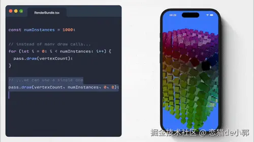 React Native 本次提到,为了对齐 Web 能力并提供强大的图形处理能力,已经在 React Native 开始引入 WebGPU 支持,其效果将确保与 Web 端的 WebGPU API 完全一致,允许开发者直接复制代码示例的同时,实现与 Web Canvas API 对称的 RN Canvas API。