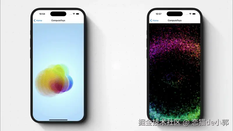 - compute.toys:一个类似 ShaderToy 的项目,但使用 WebGPU Compute Shaders, Compute Shaders 支持将像素值写入不同缓冲区,影响整个帧的多个像素,而不仅仅是分配给单个线程的像素,而其开源 JS 引擎可直接在 React Native 上运行,并集成了 Reanimated 的动画值和手势
