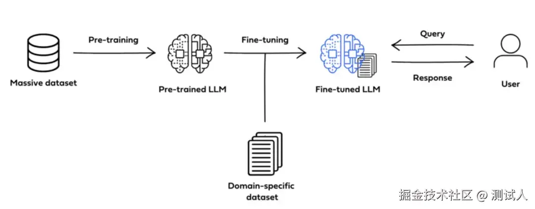 微调(Fine-tuning)是在预训练模型基础上,使用领域特定数据进行参数调整的技术过程,主要实现: