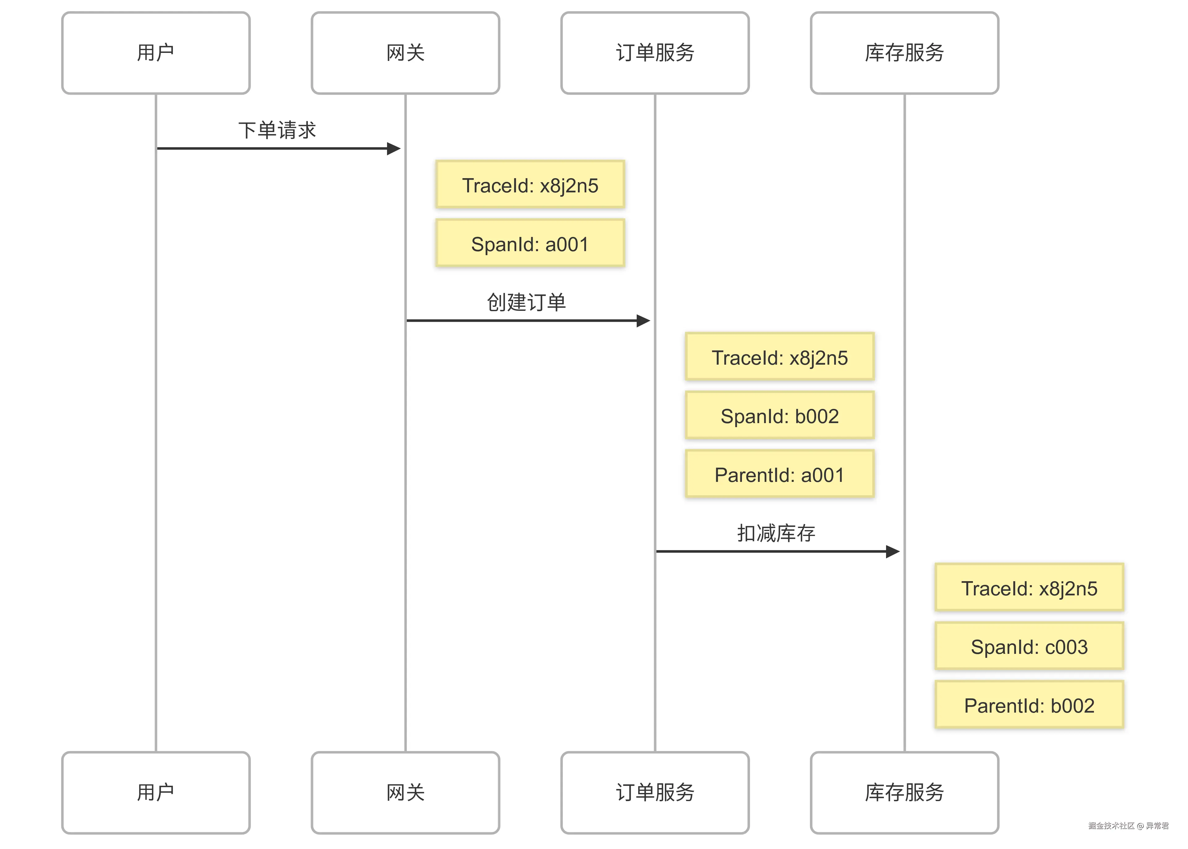 - SpanId:每个配送环节的操作记录 ID