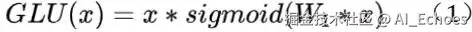 个可学习的权重矩阵。在公式(1)中,首先将输入向量 x 通过一个全连接层(线性变换)得到一个与 x 维度相同的向量,然后将该向量通过 Sigmoid 函数进行激活。这个 Sigmoid 函数的输出称为门控向量,用来控制输入向量 x 的元素是否被激活。最后,将门控向量与输入向量 x 逐元素相乘,得到最终的输出向