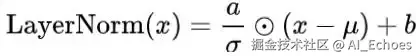 其中, 是 沿最后一个维度的均值, 是 沿最后一个维度的标准差, 和 是可学习的缩放因子和偏置项。 表示逐元素相乘。具体计算过程如下: