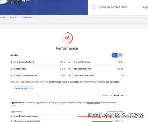 - 页面总阻塞时间Total Blocking Time (TBT) :页面上出现阻塞的时间,指在页面变得完全交互之前,用户与页面上的元素交互时出现阻塞的时间。TBT应该尽可能小,通常应该在300毫秒以内。