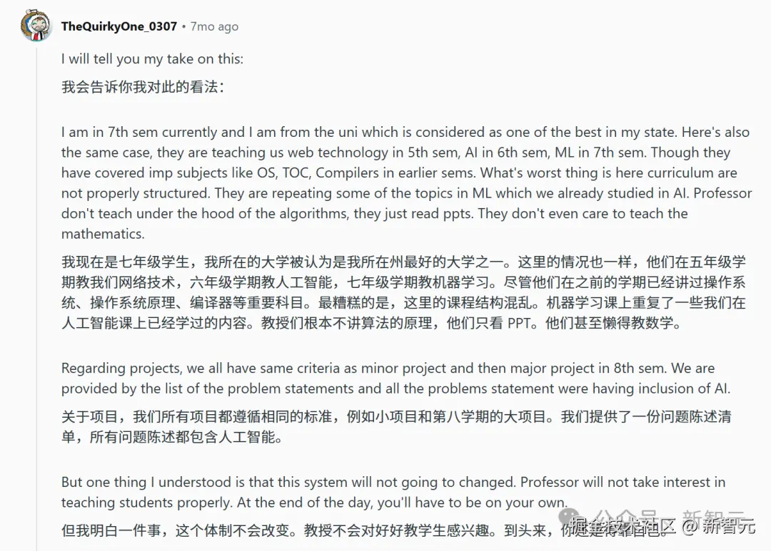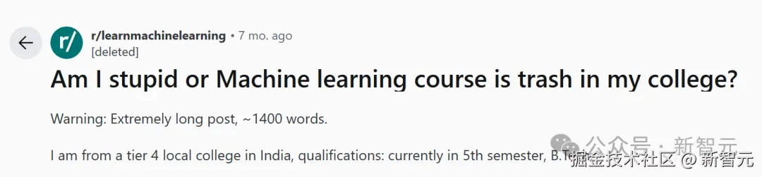 有趣的是,就在去年,一位印度学生曾在 reddit 上发帖,抱怨学校的机器学习课程太垃圾。