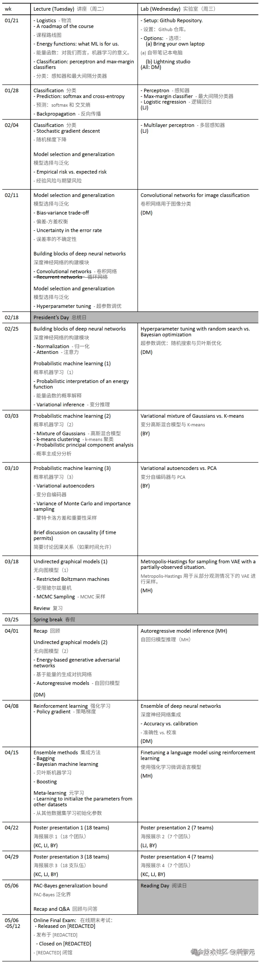 正如此前提到的助理教授所说,这份课程大纲中保留了很多深度学习前期的基础概念,这在当今竟然已经不多见了。