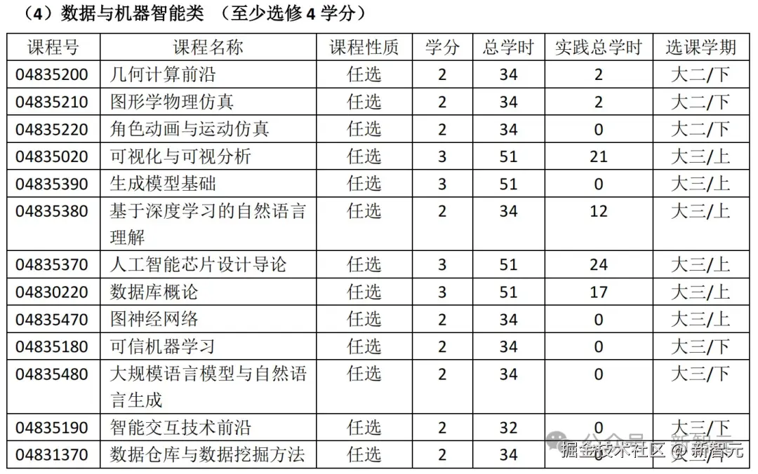 比如北大信科智能科学与技术专业(智班)的 24 年本科生培养方案,是这样的。
