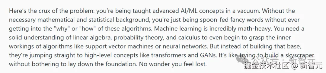 在他看来,很多课程都抛弃了关于 ML 和深度学习的基础概念,这很危险。