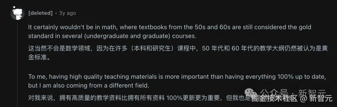 除了 AI 领域之外,有些学科本身就倾向于学习经典内容,比如数学。