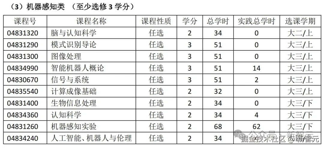 专业选修课中,还包括不少计算基础与编程类、机器感知类、数据与机器智能类的课程。
